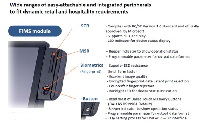 Efficient working requires seamless interaction between your IT systems and users. iSAP delivers through a comprehensive range of intuitive, useful accessories covering Printers, receipt Printer, scanners, VFD customer displays, MSR, SCR, Biometric security and multi media. This enables "one-stop shopping", saving you time and money.